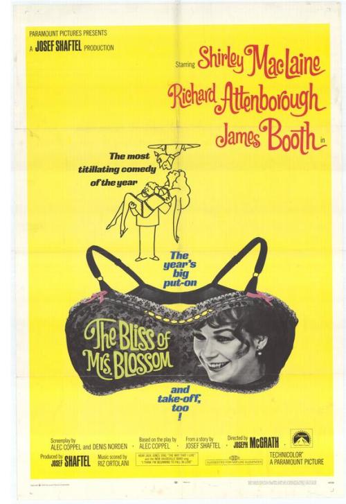 This wacky film nicely exudes the mod, experimental wave of filmmaking that permeated the era of the late 60’s. The story takes place in London and is about a clothing manufacturer’s wife named Harriet Blossom (Shirley MacLaine) who one day calls her husband Robert (Richard Attenborough) while he is at work to tell him that her sewing machine has broken down. Robert sends his lowly assistant Ambrose Tuttle (James Booth) over to their house to help her fix it. Harriet is a bit bored with life and feels neglected by her husband, so she not so subtly seduces Ambrose and then hides him in the attic where he soon takes up residence. He comes out only when Robert is away, but the unexplained strange noises that Robert hears and the many close calls make him think he is going insane and leads him to a nervous breakdown.
