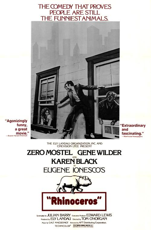 Yet even with all this the film still has its moments. It’s based on the Eugene Ionesco play and involves everyone getting turned into a rhinoceros. Zero Mostel, Gene Wilder, and Karen Black all resist, but slowly unravel to the ‘peer pressure’ and wanting to be ‘part of the crowd’. The outrageous premise is simply a front to examine the human phenomenon known as conformity, both on those that do and those that don’t. It is rare that anything tackles this subject with any serious study, yet this one does. The observations are, believe or not, quite interesting and accurate and Wilder really does make a terrific non-conformist.