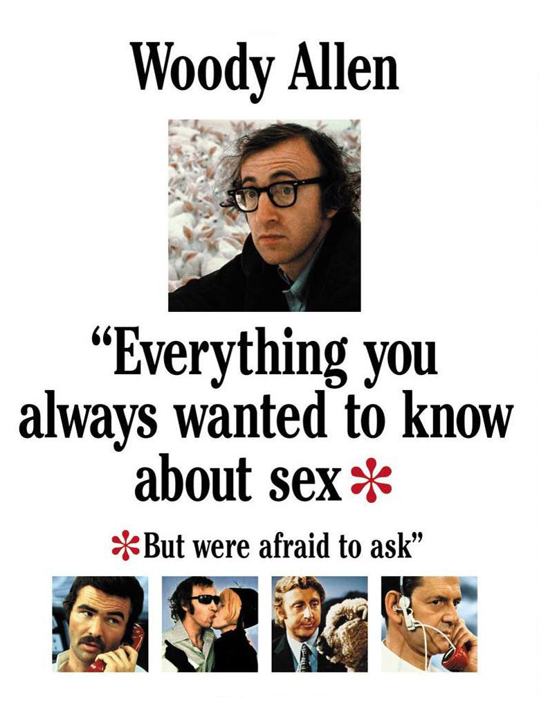This is a very loose adaptation by Woody Allen of the famous sex manual written by David Reuben, but given a comic spin. This was made when Allen was at his absolute peak as nearly everything is funny and original.