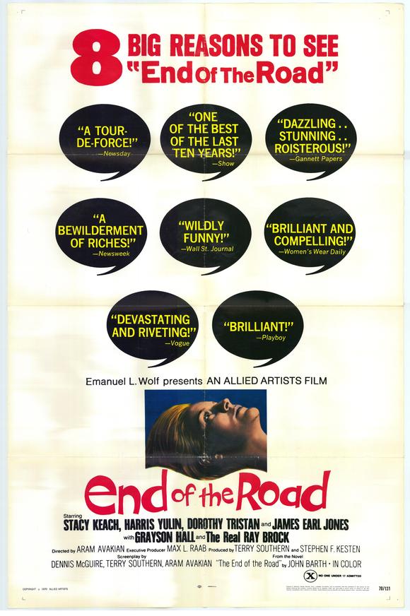 A bizarre adaptation of John Barth’s already bizarre novel detailing the story of a man (Stacy Keach) who goes into a catatonic state at a train station and is then sent to a strange mental hospital run by a weirdo named Doctor D (James Earl Jones). After he is considered to be ‘cured’ he takes a job as a college professor and proceeds to have an affair with the wife (Dorothy Tristan) of one of his colleagues (Harris Yulin).