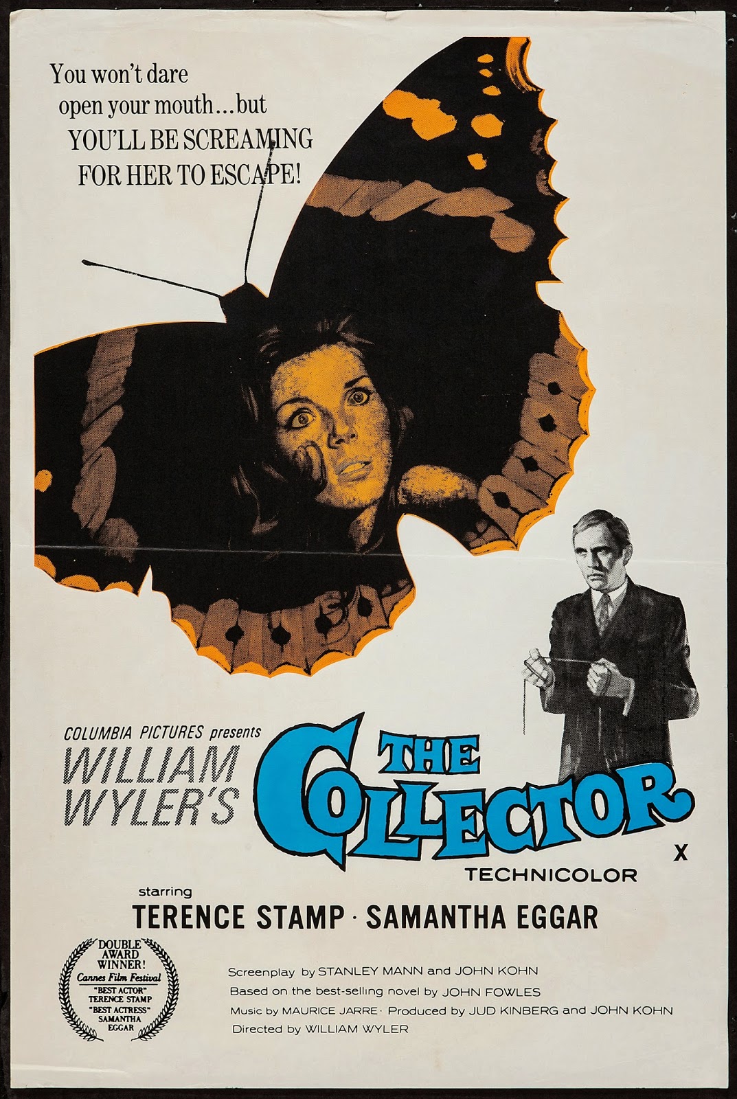 Freddie (Terence Stamp) is a withdrawn loner who collects butterflies for a hobby. One day he manages to win a lot of money in a football pool and uses it buy an old, isolated house in the English countryside. The place has a very large cellar, which gives him the idea that it can be used as a prison. It is then that he decides to kidnap beautiful art student Miranda (Samantha Eggar). He keeps her in the cellar, but fixes it up making it seem almost like an apartment. He treats her with the upmost respect and even knocks before entering her room. He buys her art supplies so she can continue her work and makes an agreement with her that he will let her go after 4-weeks, but hopes in between then that she will fall in love with him.