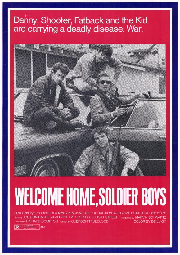 Four Green Berets (Joe Don Baker, Allan Vint, Elliot Street, Paul Koslo) return home from a stint in Vietnam. Initially they stop off at the home of one of the men’s parents, but find that none of them are ready to settle down, get a job, and play ‘within-the-rules’, so they set out on a cross country road trip, but when their car breaks down they end up paying more than they should for the repairs by an unscrupulous mechanic (Timothy Scott). This along with dealing with a society that does not seem to appreciate what they did for their country gets them angry. When they arrive in a small town ironically called Hope their simmering frustrations boil over. Using their army ammunition they go on a rampage destroying the town and everyone in it causing the National Guard to come in to try and stop them and creating for them a war zone all over again.