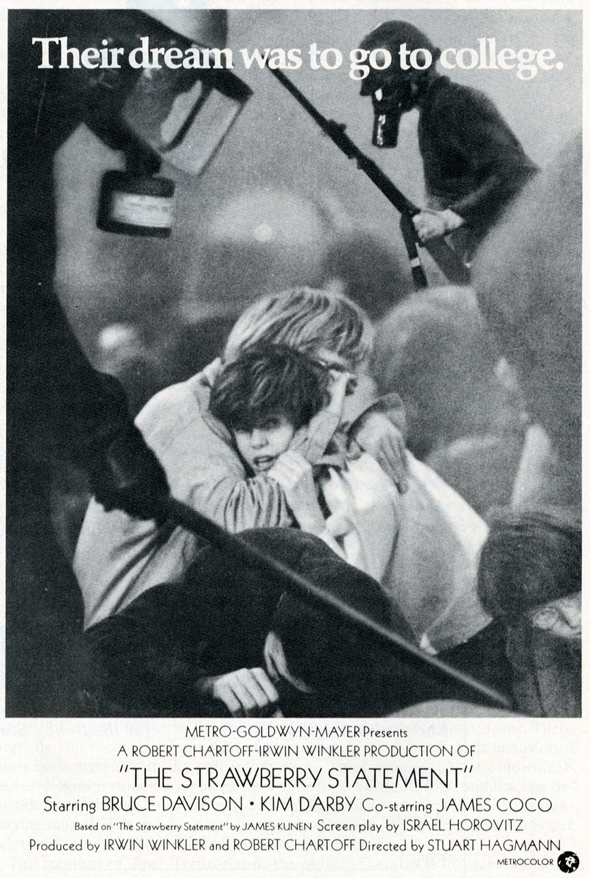 Simon (Bruce Davison) is a young college student attending a university simply as a means to get an education and find himself a good job. He has no real interest in the student revolt going on, but as a lark and a way to meet girls, he decides to passively get involved with students who have taken over the administrator’s building in protest of the school’s plan of building a gymnasium in an African American neighborhood. Slowly Simon finds himself taking up more of their cause and embracing their stance especially after meeting Linda (Kim Darby) who is much more of a student radical, but the two are ill-prepared for the brutal outcome when exasperated school officials have the police violently storm the building and haul the students out.