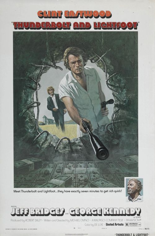 Thunderbolt (Clint Eastwood) is a former bank robber hiding out as a Montana preacher while trying to avoid Red (George Kennedy) and Eddie (Geoffrey Lewis) who are his former crime partners that mistakenly believe he double-crossed them. One day they manage to catch up with him and try gunning him down during one of his church services. Thunderbolt escapes by hopping into a car driven by Lightfoot (Jeff Bridges). Despite their contrasting temperaments and ages of the two end up hitting-it-off and even manage to bring Red and Eddie into the fold once it’s explained to them that Thunderbolt hadn’t sold them out. Now the four plan to rob the same bank again using a 20 millimeter cannon to break into the safe.
