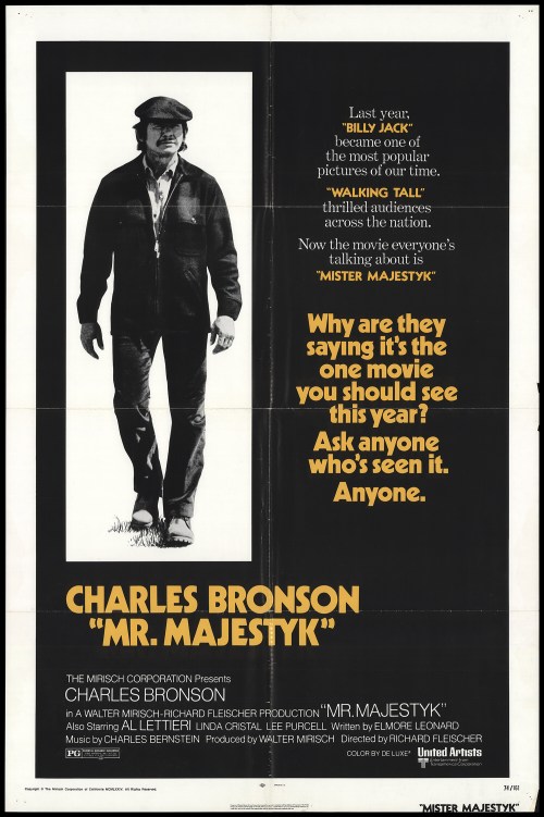 Many people don’t realize that during the ‘70s Bronson did quite a few offbeat films with St. Ives and From Noon Till Three being his two biggest, but this one comes in as an honorable mention. I’ve watched a lot of movies in my lifetime and can usually guess where they’re going, but this one kept me genuinely intrigued most of the way. The script is enlivened with its vivid on-location shooting done mostly in La Junta, Colorado, which includes a well-staged shootout done in the center of town as well as a car chase that takes advantage of an area with scenic rock formations.