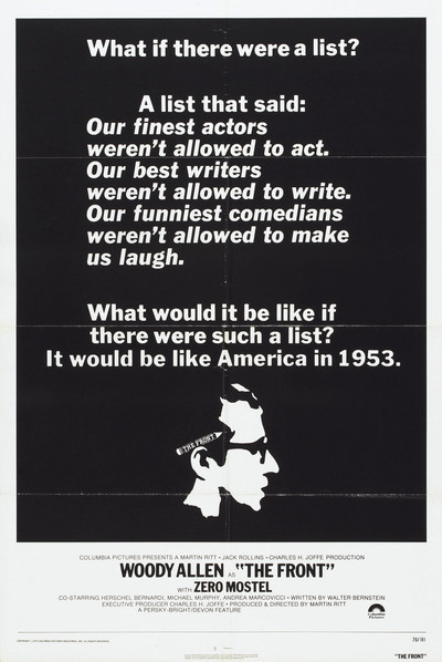 In 1953 during the height of the Red Scare where many working in Hollywood were blacklisted if they had any connections with communist sympathizers writer Alfred Miller (Michael Murphy) suddenly finds himself out of work and unable sell any of his scripts. He asks his friend Howard (Woody Allen) who works as a cashier at a cafe to act as a ‘front’ for him by selling his scripts to producers and acting as if he wrote them instead of Alfred. In exchange Howard would be able to collect 10 % of the profit, which he readily accepts. Soon Alfred’s other writer friends hire Howard to sell their scripts, which quickly makes him financially comfortable, but he soon sees the dark side of the business especially when he gets investigated for being communist sympathizer himself.
