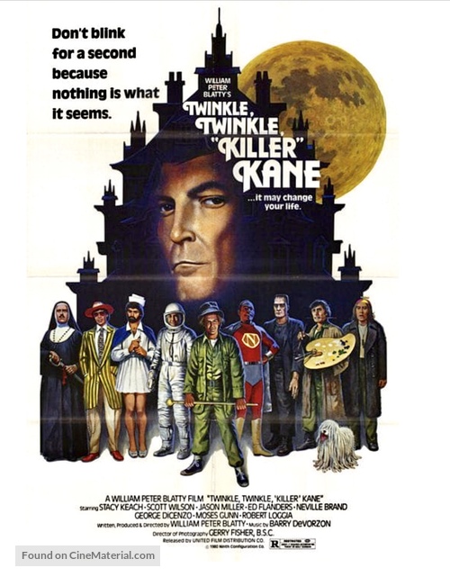 The film has a rocky tone in which part of it delves into campy humor while the other half is more serious. The reason for this is that when William Peter Blatty first wrote the novel of which this movie is based in 1966 it was called ‘Twinkle, Twinkle “Killer” Kane!’ and told in a darkly humorous vein. In 1978 he rewrote the story with a more serious tone and that version was published with the same title as this film.