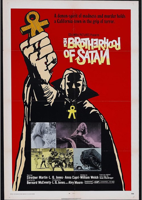 Ben (Charles Bateman) and his girlfriend Nicky (Ahna Capri) along with Nicky’s 9-year-old daughter K.T. (Geri Reischl) are driving through the New Mexico desert when they come upon a gruesome car accident where the vehicle and people inside it were crushed by some unknown force. When they go into the nearby town to report it they find the people there to be acting strangely and showing an unhealthy liking to their daughter. This causes them to get back into their car and drive away, but a blow-out tire forces them to return and face head-on a secret group of Satanists lead by Duncan (Strother Martin) the town’s doctor.