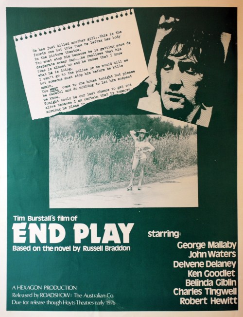 Mark (John Waters) picks up a hitchhiker (Delvene Delaney) on a lonely road and then promptly kills her. He then travels to his brother Robert’s (George Mallaby) house for a visit. When Robert leaves to go target practicing Mark brings the dead hitchhiker’s body inside and dresses her up to make it appear that she is still alive. He then disguises himself while taking the corpse to the local movie theater and once there he sneaks leaving the dead body to be discovered by others. Once the news of the grisly discovery hits the airwaves Robert immediately suspects Mark, but decides not to go to the authorities since he is already a paraplegic and at risk, due to lesions on his neck, of losing the movement of his arms, which will ultimately render him under the care of Mark. He also dislikes the police due to a childhood issue that he had with them, so for these reasons he covers for Mark’s actions, but when he realizes that his girlfriend (Belinda Giblin) has cheated on him with Mark he decides to carry out a stern revenge of his own.